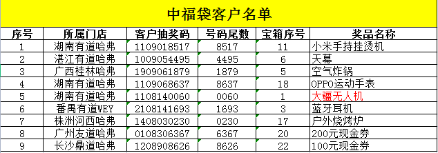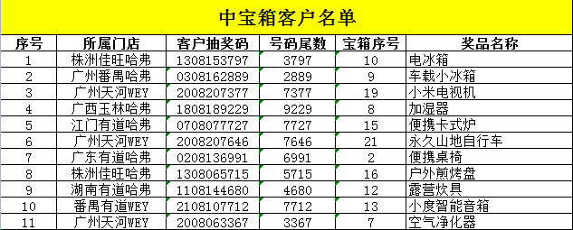 中獎(jiǎng)客戶名單
