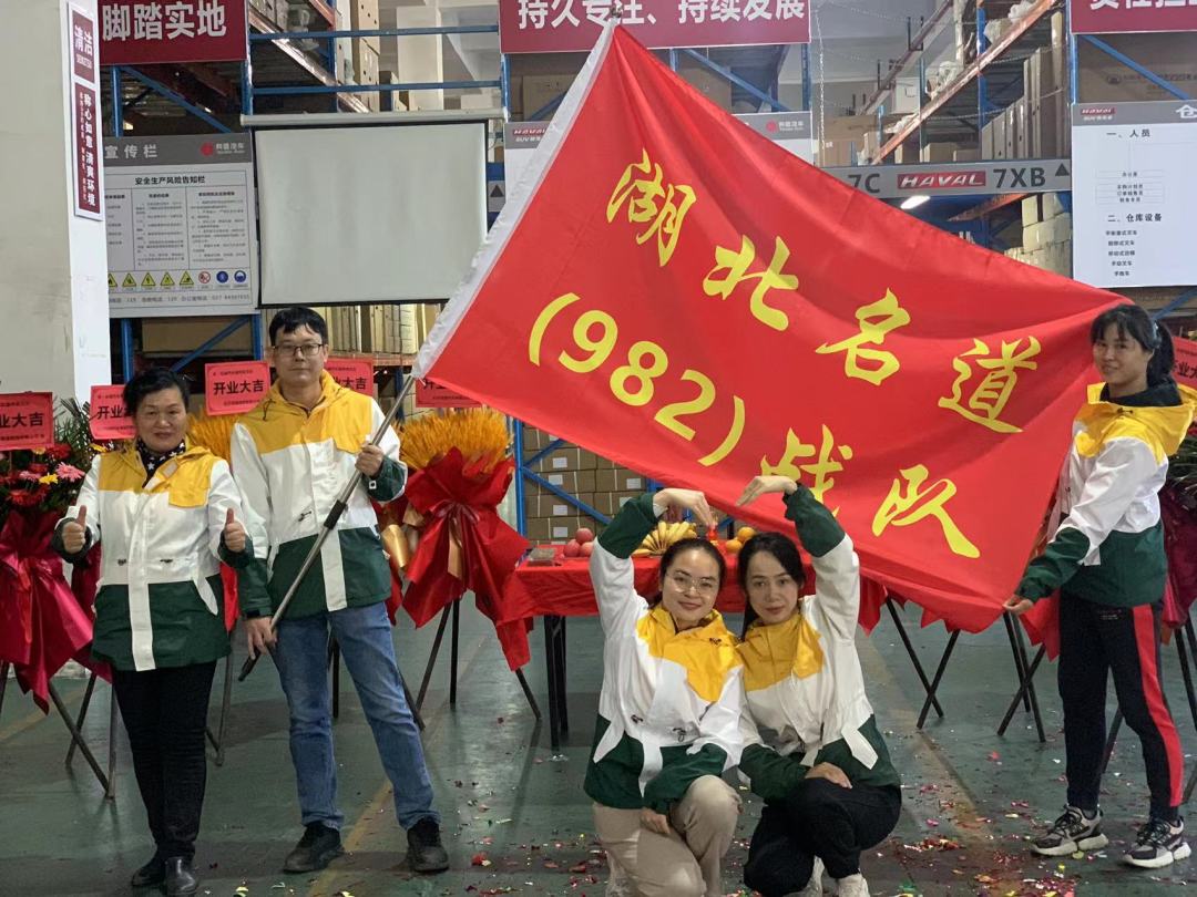 當(dāng)天吉時(shí):戰(zhàn)旗飄起,彩花綻放,風(fēng)光正好,太陽正紅,給武漢倉剪彩儀式帶來了吉祥好兆頭!在曾總的主持下,剪彩儀式順利啟動(dòng),曾總與嘉賓、湖北名道團(tuán)隊(duì)一起在現(xiàn)場剪彩,祝福武漢倉開業(yè)大吉、生意興隆。