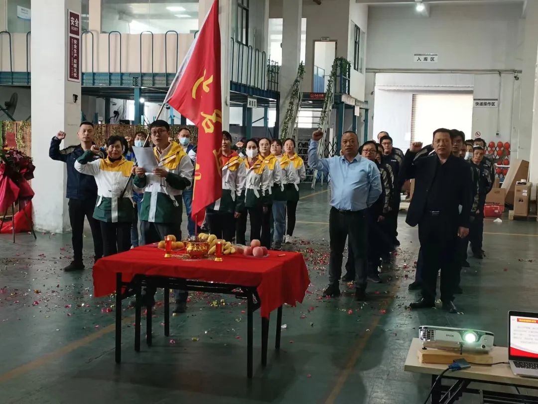 湖北名道團(tuán)隊(duì)現(xiàn)場授旗并進(jìn)行服務(wù)保障宣誓儀式:明確自己的工作目標(biāo)與使命,認(rèn)真對待每一份訂單,精準(zhǔn)發(fā)運(yùn)每一個(gè)備件,用心服務(wù) 每一個(gè)客戶, 使命必達(dá),亮劍沖鋒!