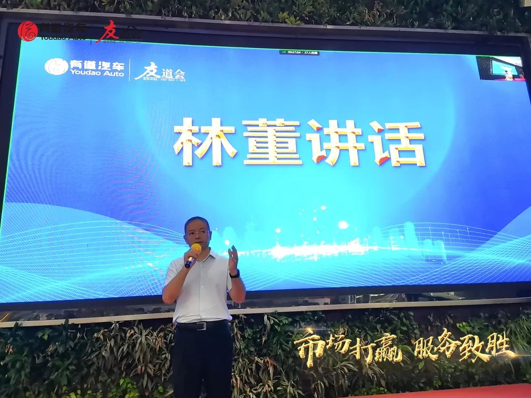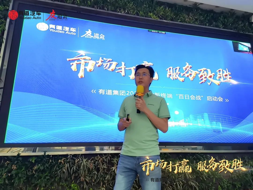 有道汽車集團(tuán)董事長林大昌先生、運(yùn)營中心負(fù)責(zé)人林總、區(qū)域總監(jiān)徐總、廠家領(lǐng)導(dǎo)、總部各領(lǐng)導(dǎo)、廣州各區(qū)店長齊聚廣東區(qū)域大會現(xiàn)場,全體有道人員在線上線下同步參與此次啟動會,一同賦能,立下百日沖刺的目標(biāo)與決心。