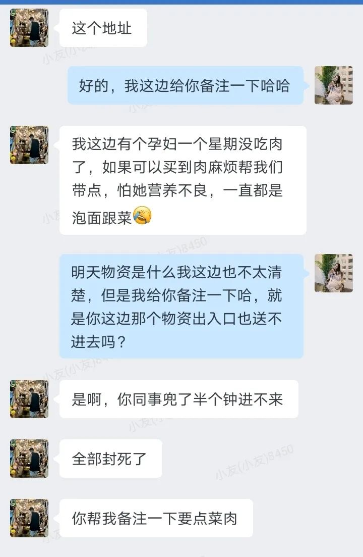 4月15日,我們再次聯(lián)系林先生,嘗試將物資包送往他有通行證的朋友,無奈又得來一個壞消息——林先生的朋友所在區(qū)域也成了封控區(qū)域。