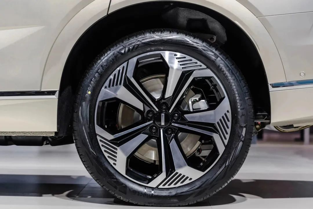 車(chē)頭設(shè)計(jì)獨(dú)特有辨識(shí)度,側(cè)面線條富有張力,筆直鋒銳,隱藏式門(mén)把手配合大尺寸輪轂,彰顯高端智能新能源形象;車(chē)尾則配備貫穿式尾燈,極具辨識(shí)性。