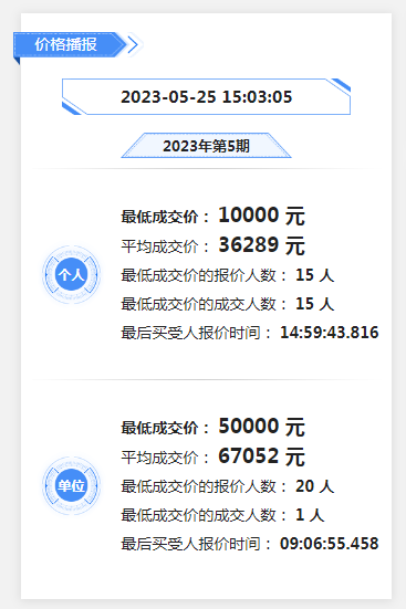 個(gè)人最低成交價(jià)為10000元,最低成交價(jià)成交人數(shù)為15人,個(gè)人平均價(jià)格為36289元/人;