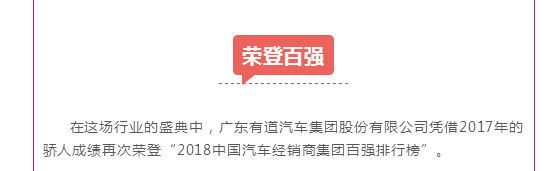 廣東有道汽車(chē)集團(tuán)股份有限公司榮登2018中國(guó)汽車(chē)經(jīng)銷(xiāo)商集團(tuán)百?gòu)?qiáng)排行榜